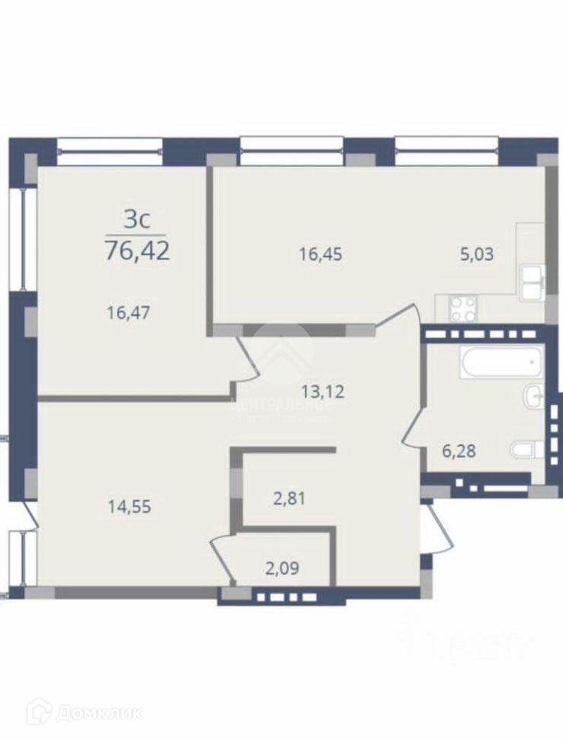 Общая площадь 76.4 м2