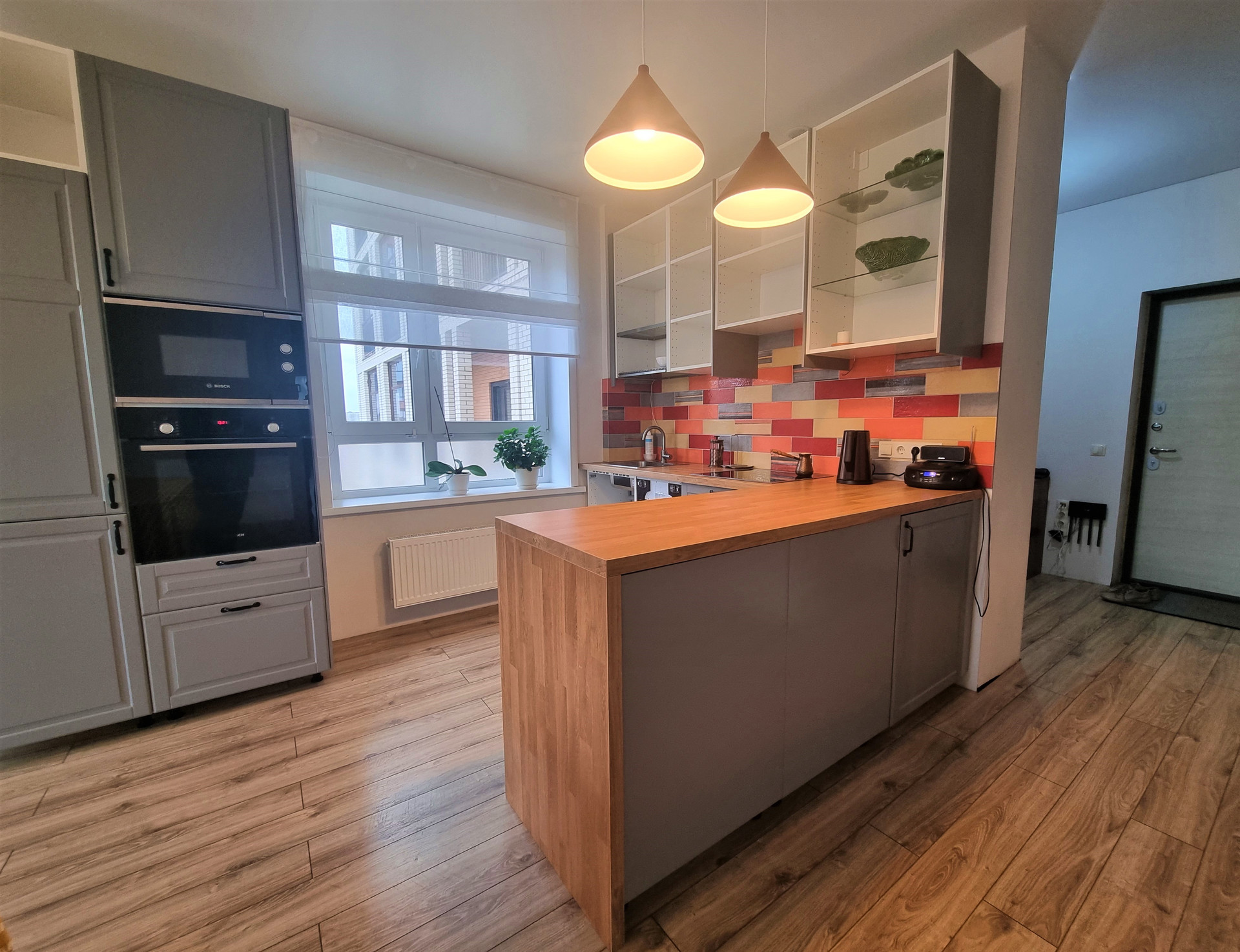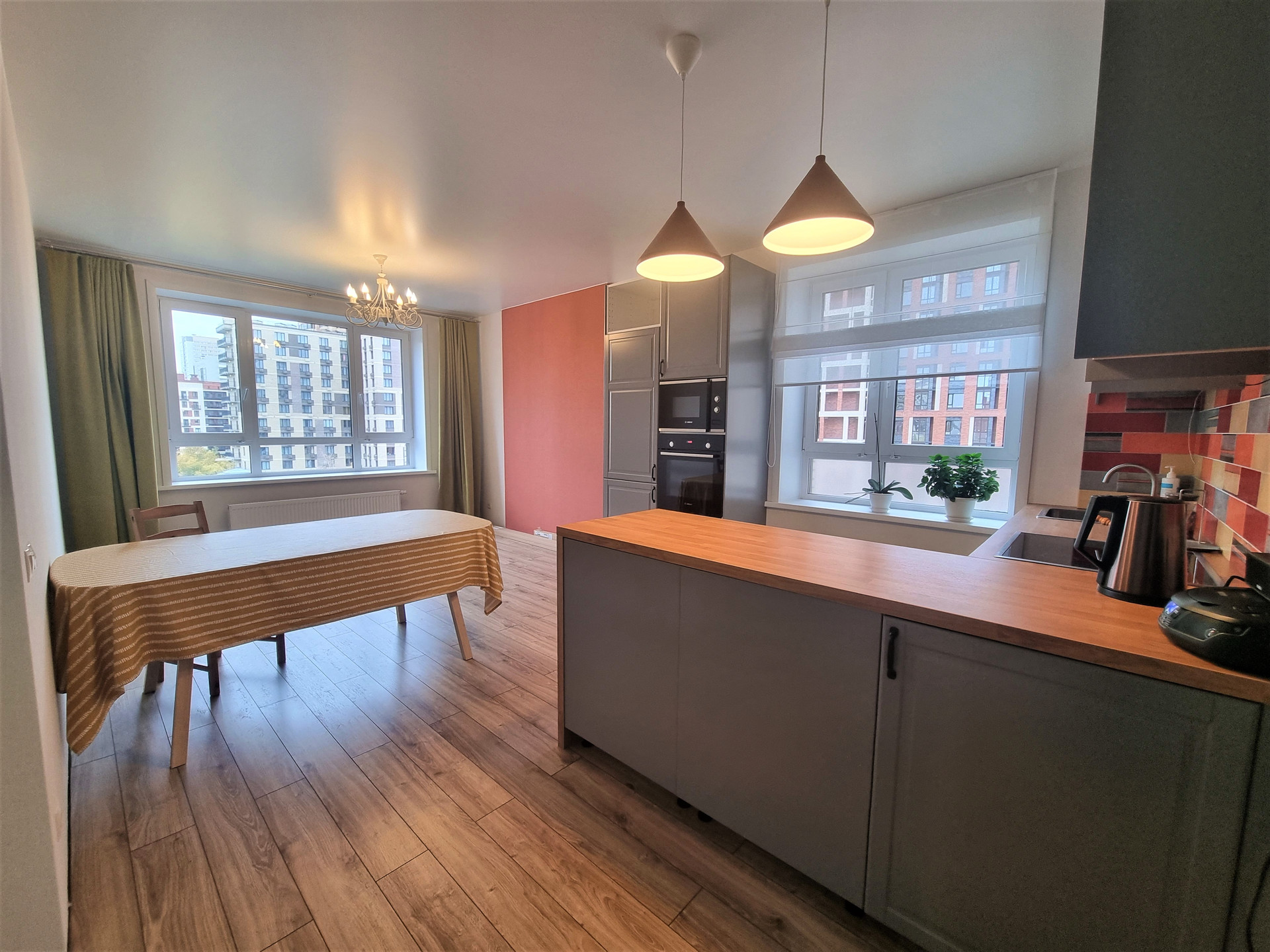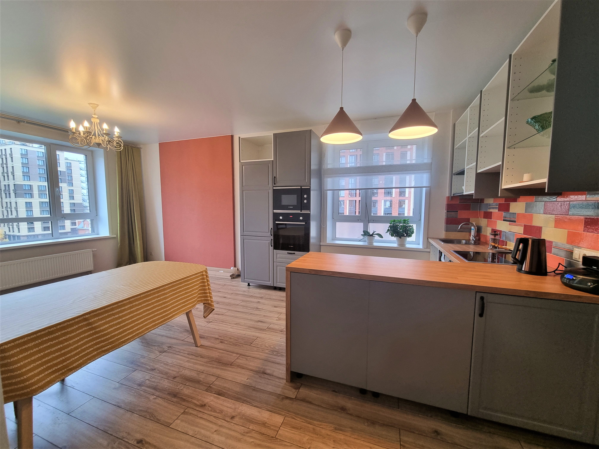 -ремонт Плитка испанский керамогранит (в санузлах), итальянская (на фартуке в кухне), Радиаторы Kermi (Швейцария), Оконно-дверная фурнитура MACO(Австрия), Смесители Kludi (Германия), Санфаянс Geberit (Швейцария), Ванны акриловые Excellent (Польша),Электрика (розетки/выключатели) - Schneider Electric (Франция), Встроенная техника Bosh (варочная поверхность, духовой шкаф и микроволновка), Indesit (посудомойка), Gorenje (холодильник),Стиральная машинка Bosh,Ламинат - Kastamonu Sunfloor 12 104 Дуб Самора. По квартире локально теплый пол, все освещение продумано, сделано наиболее удобно и комфортно , новому собственнику потребуется всего лишь оформить свет в те светильники , которые по душе именно ему. Хотелось бы отметить, что вся техника и мебель остается при продаже новому хозяину квартиры.