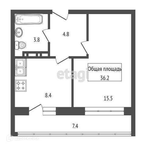 Общая площадь 36.2 м2