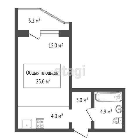 Общая площадь 25 м2