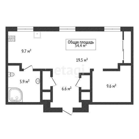 Общая площадь 54.4 м2