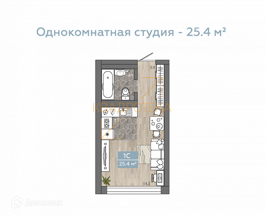 Общая площадь 25.6 м2