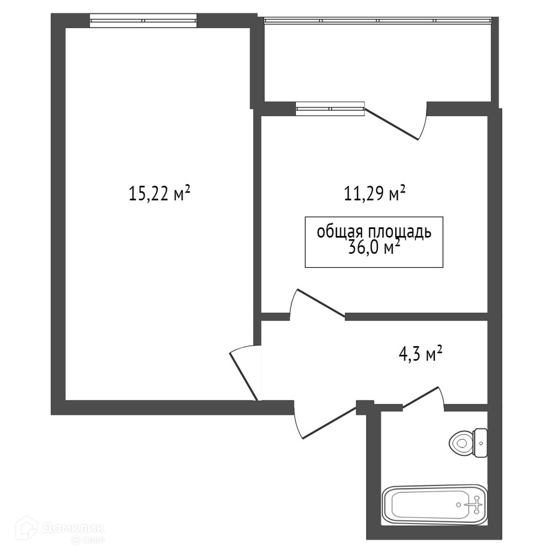 Общая площадь 36 м2