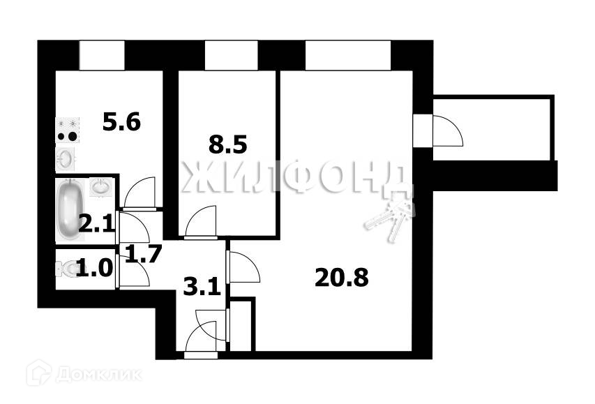 Общая площадь 44.8 м2