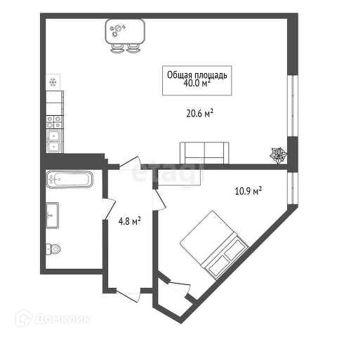 Общая площадь 40 м2