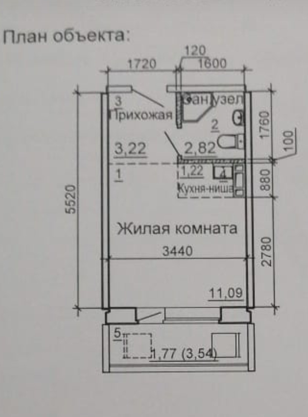 Общая площадь 18 м2