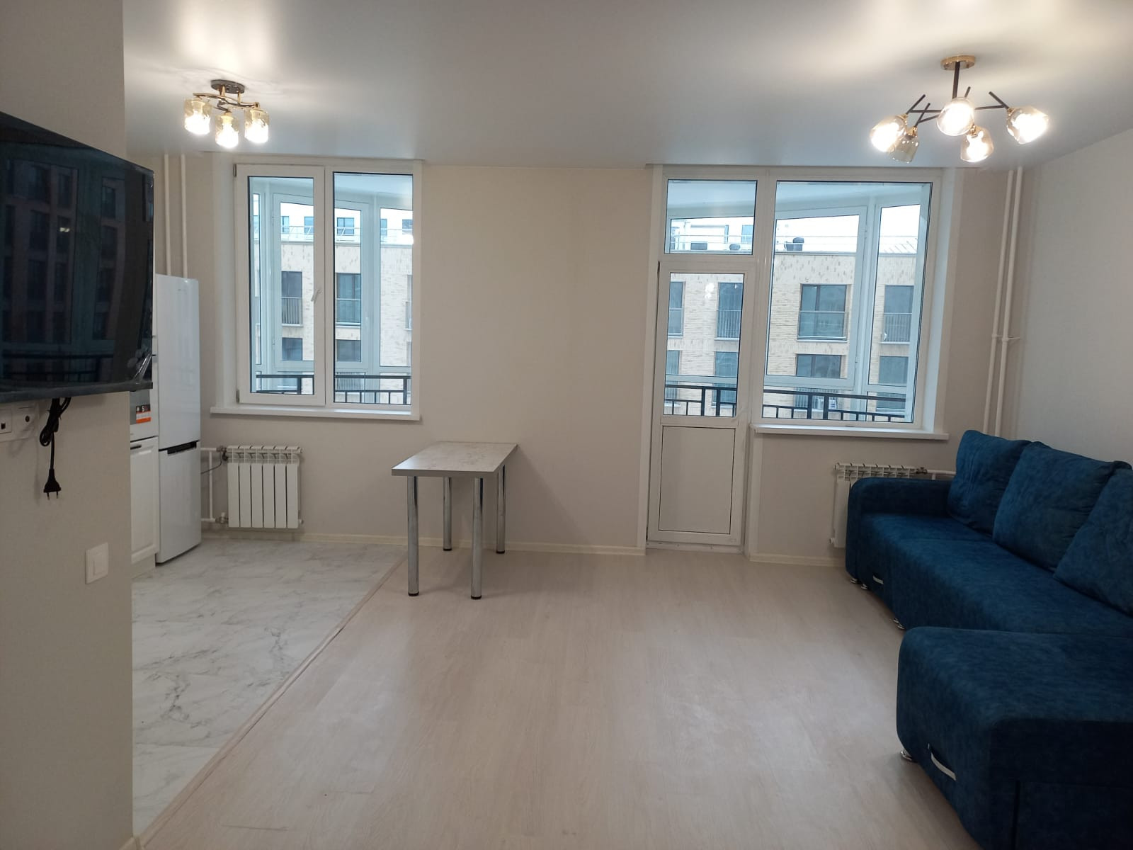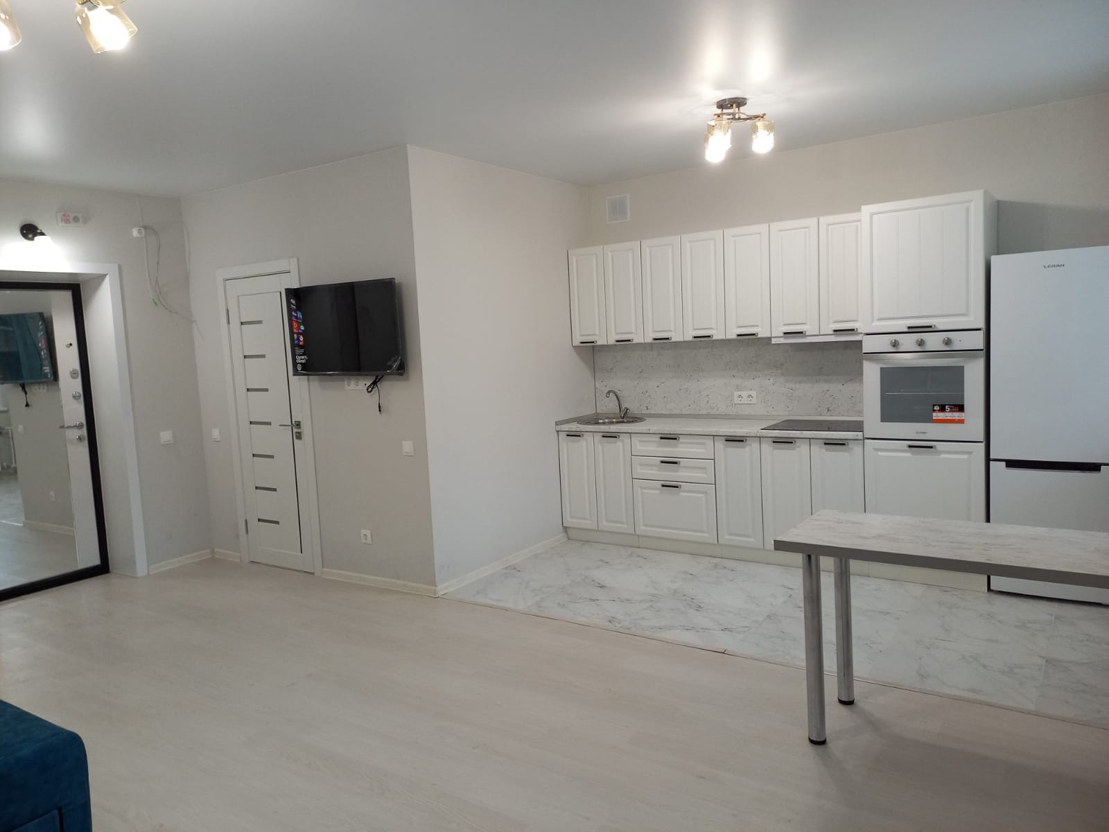 Продам ЭКСКЛЮЗИВНУЮ квартиру свободной планировки с ремонтом, мебелью и техникой по линии МЕТРО ! Дом Комфорт-класса, с красивой входной зоной. Квартира очень интересной планировки, по всей квартире теплые полы, т.к. выполнена горизонтальная разводка отопления . Эксклюзивность этой квартиры состоит в том, что она просторная, имеет два окна и шикарную полукруглую лоджию ( 6.8кв.м.). Окна выходят во двор. В квартире сделан красивый, качественный ремонт из дорогостоящих материалов в светлых тонах, что придает еще больше простора и так достаточно просторной квартире-студии. Квартира продается со всей мебелью и техникой, которая включает в себя : красивый белоснежный кухонный гарнитур с духовым шкафом и варочной панелью, кухонный стол, холодильник, телевизор, белоснежный шкаф-купе с зеркальной дверью, хороший большой угловой диван синего цвета , стиральная машина, тумба-раковина и зеркало в ванной комнате .Вся мебель и техника абсолютно новые, в квартире ни кто не жил , ни кто не прописан.