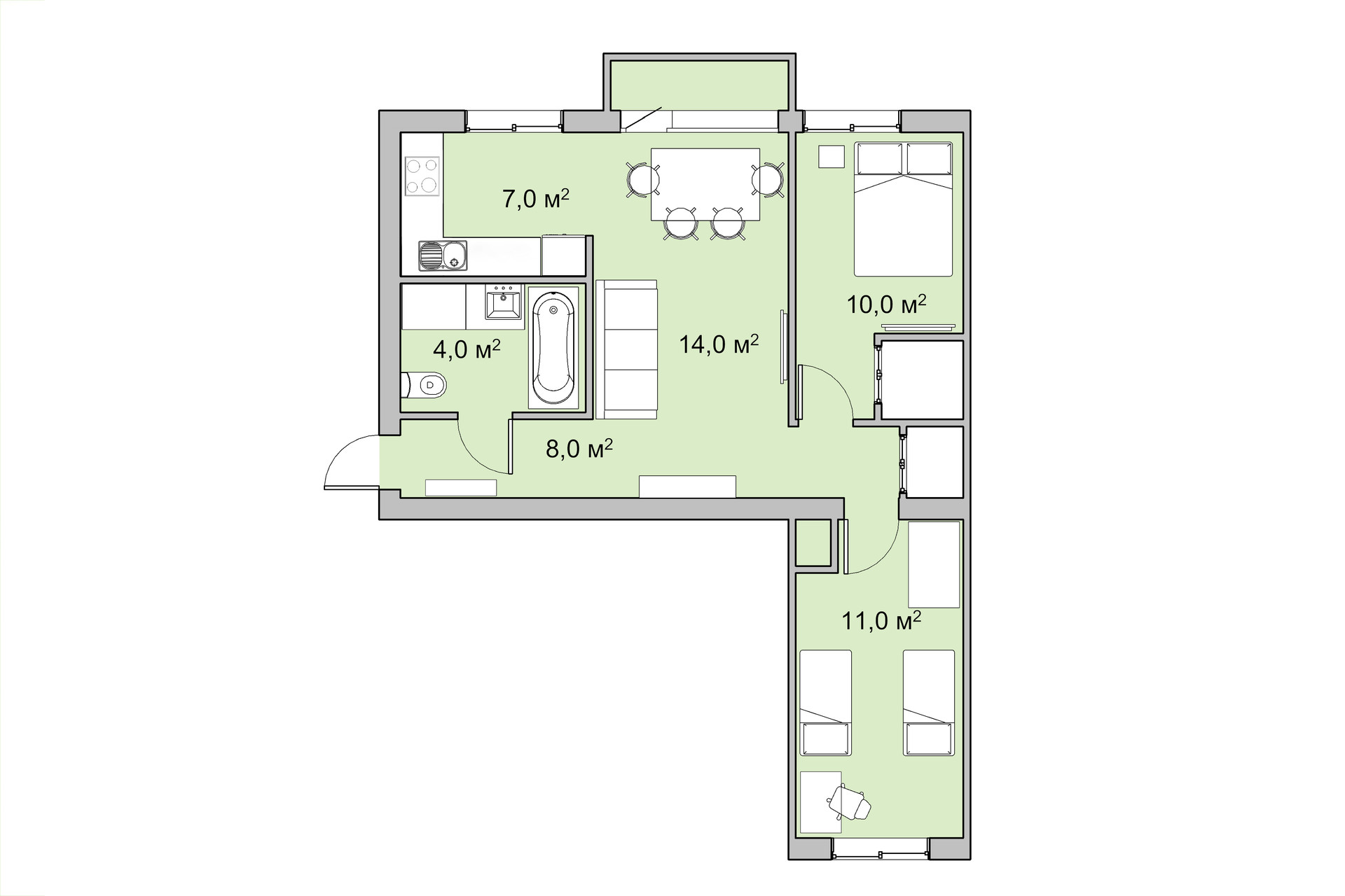 Общая площадь 54 м2