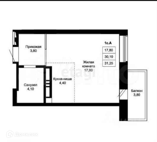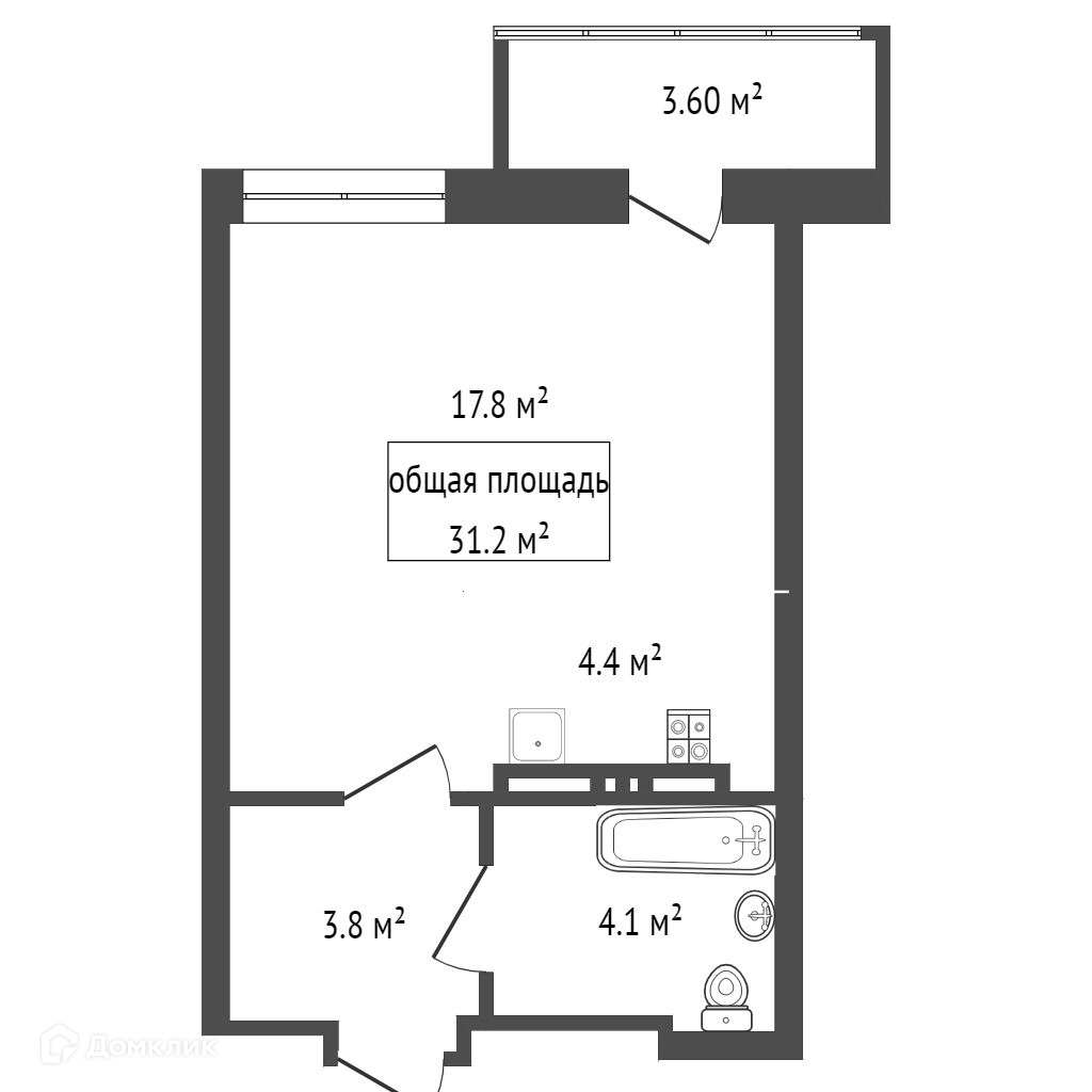 Общая площадь 31.2 м2