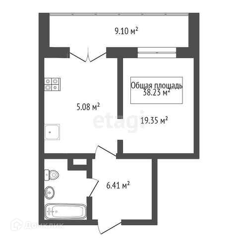 Общая площадь 38.23 м2