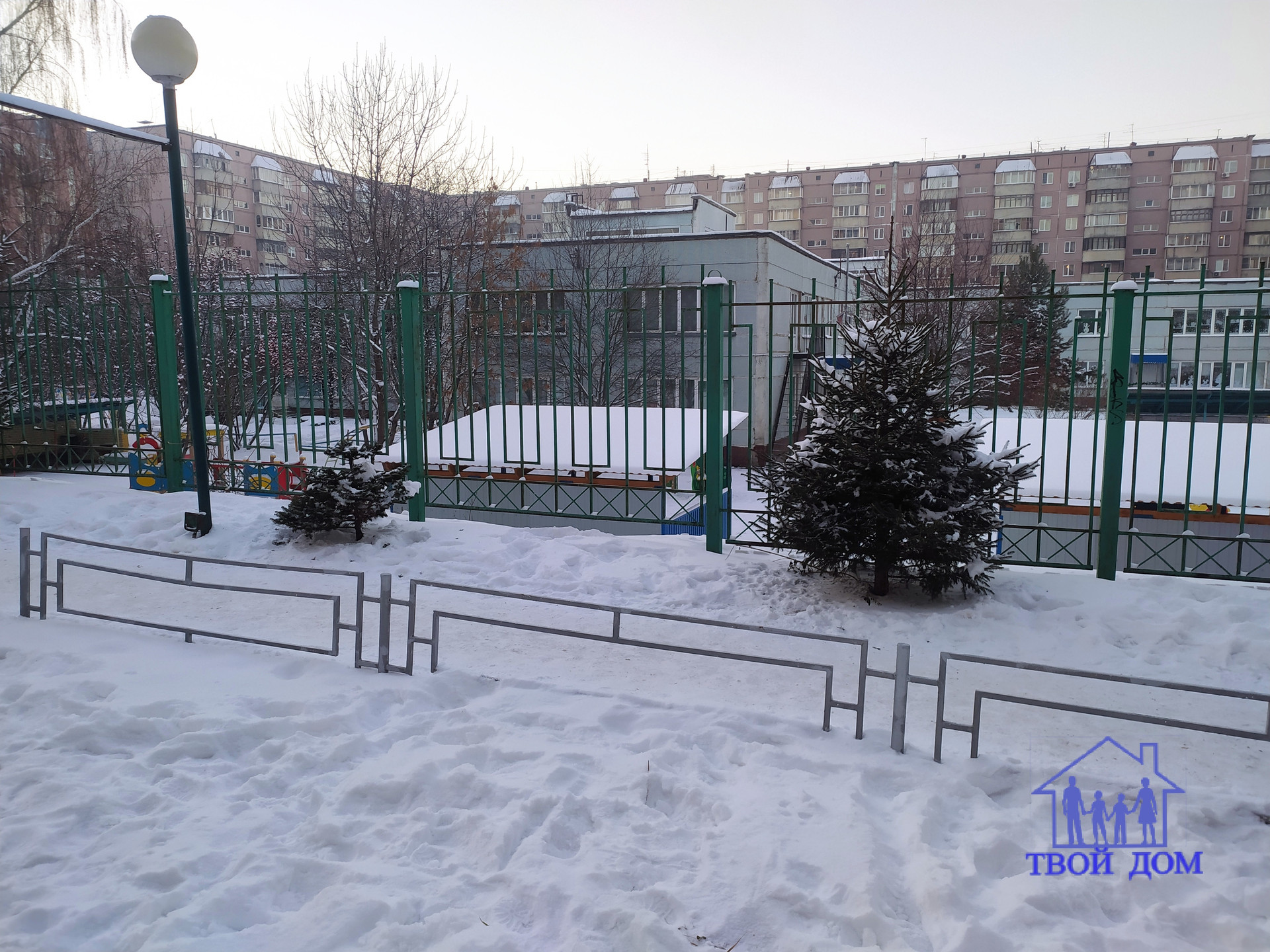 Во дворе есть детская площадка, въезд во двор через шлагбаум.