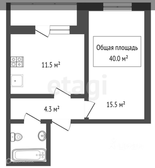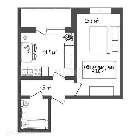Общая площадь 40 м2