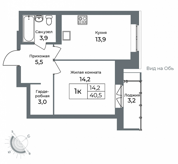Общая площадь 40.5 м2