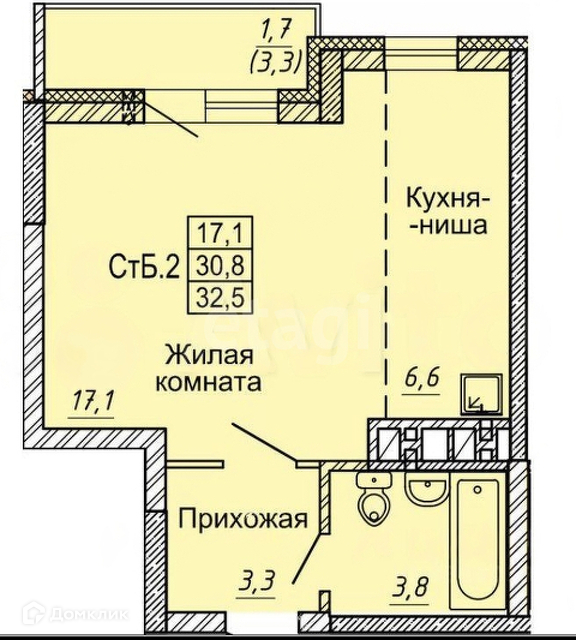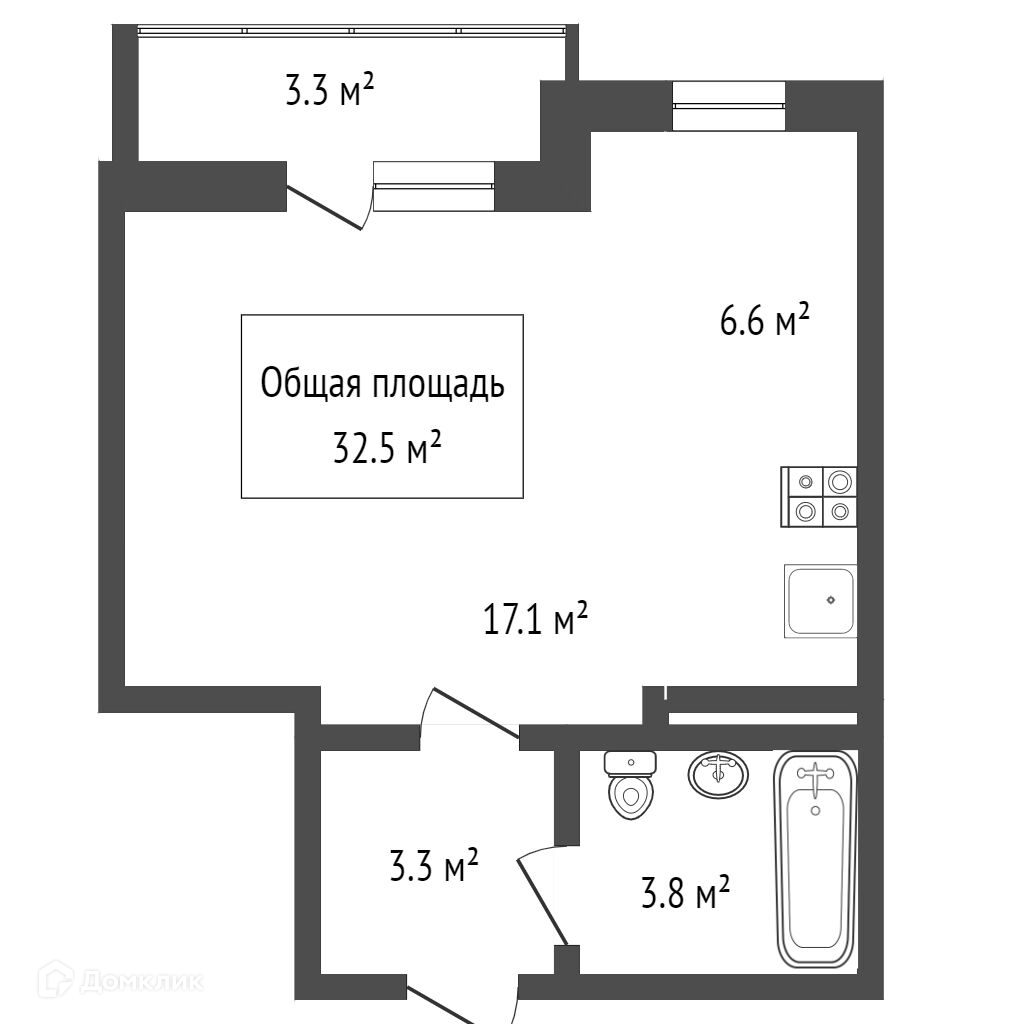Общая площадь 32.5 м2