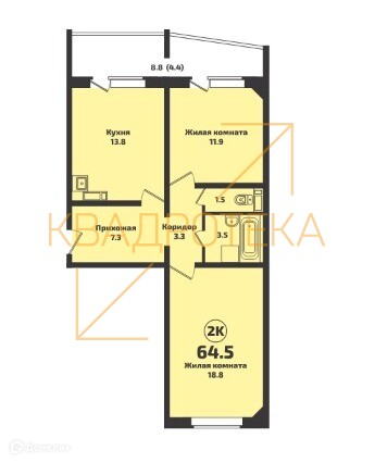 Общая площадь 64.5 м2