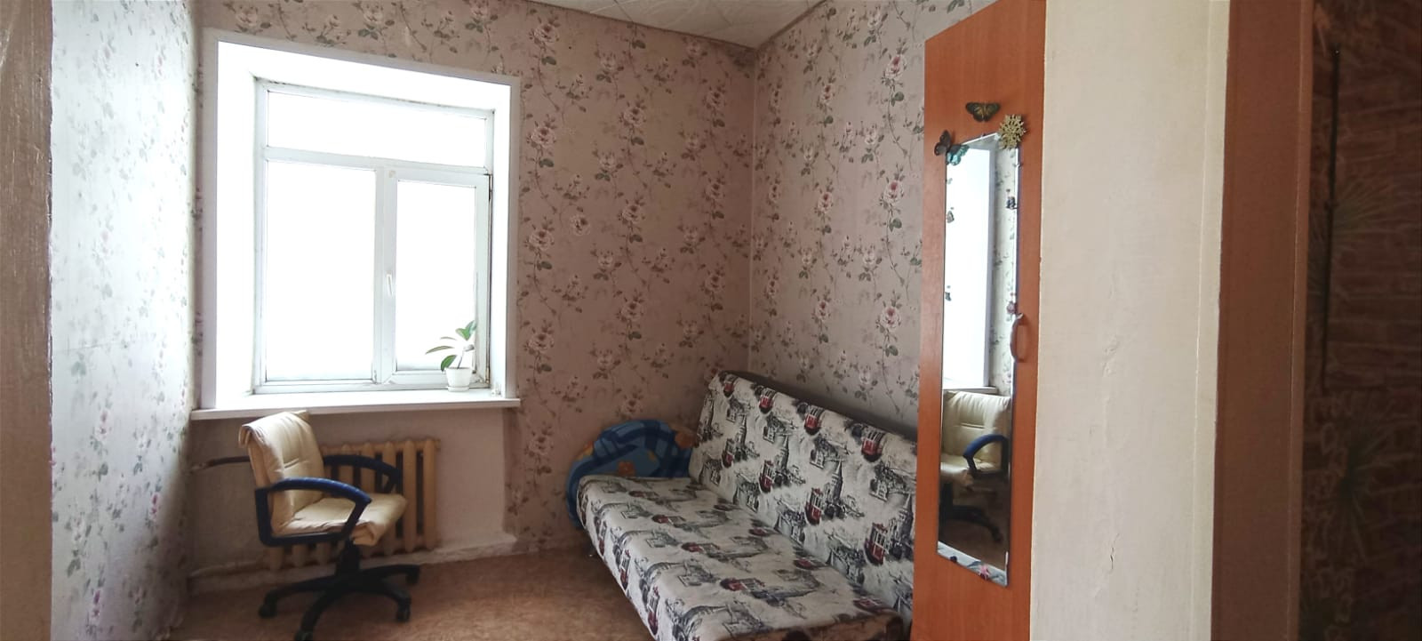 В продаже квартира 30 кв.м на 1 этаже, теплая, потолки 3 м, окна пластиковые, есть решетки;