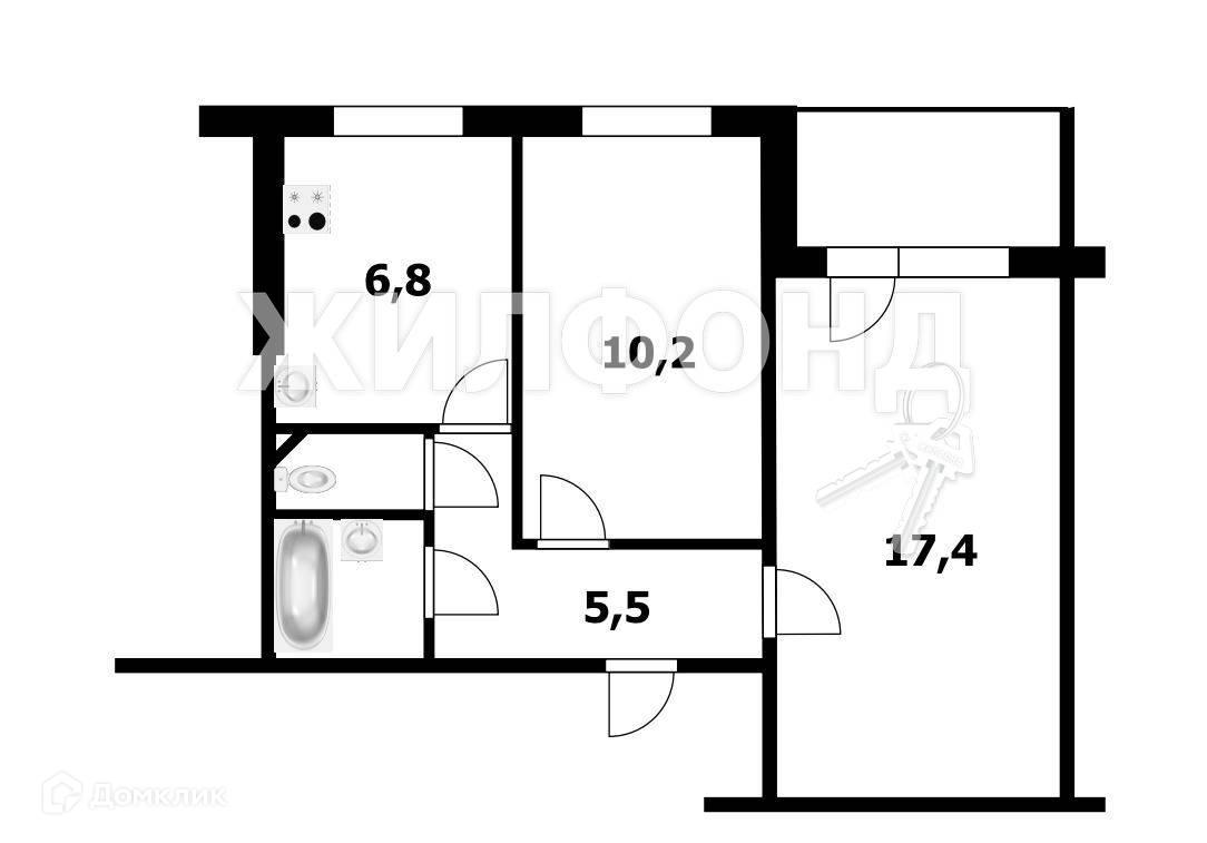 2-комнатная квартира, 43.4 м2, этаж 2 / 9, на продажу в Новосибирске, улица Бердышева, 5