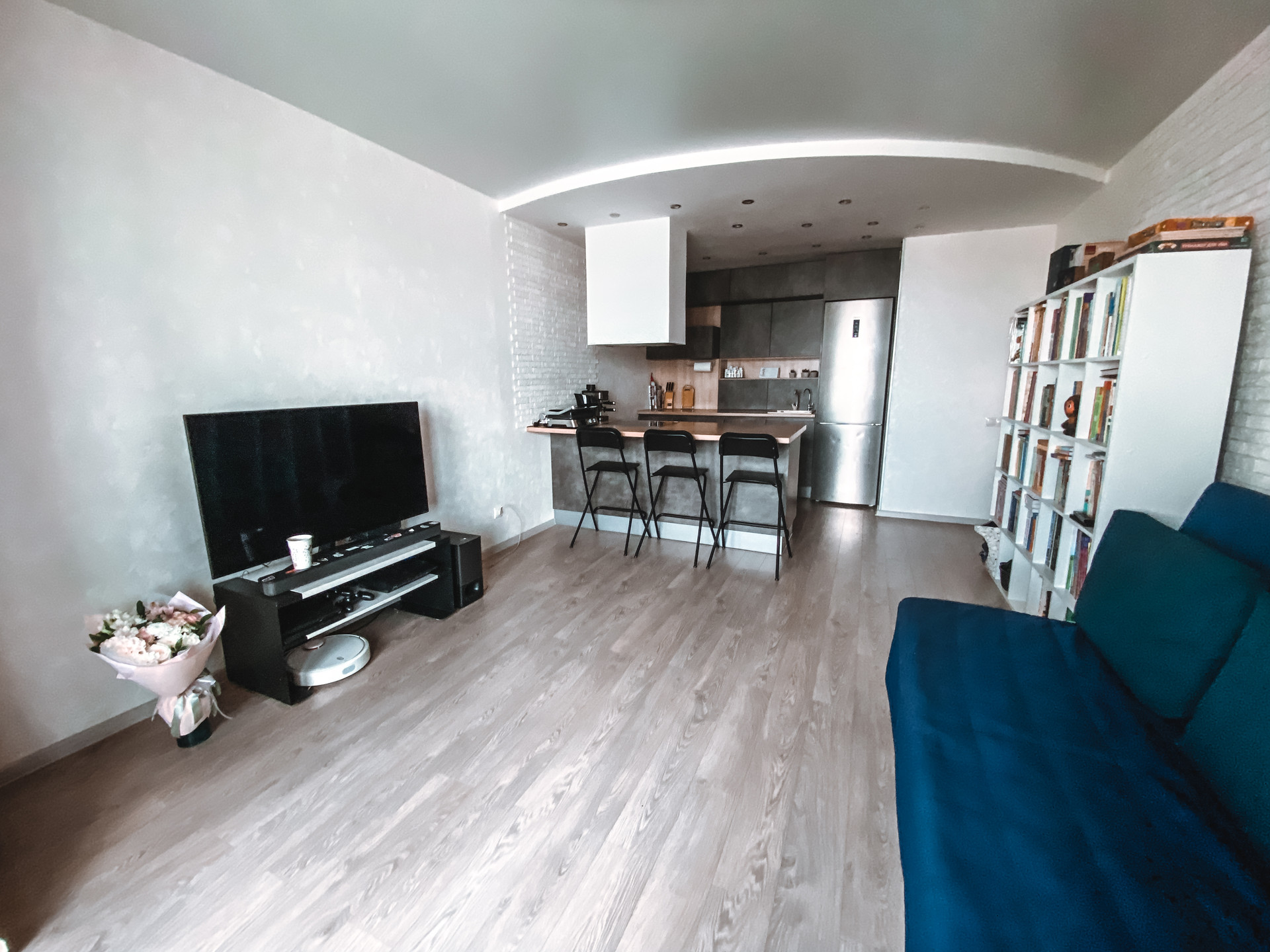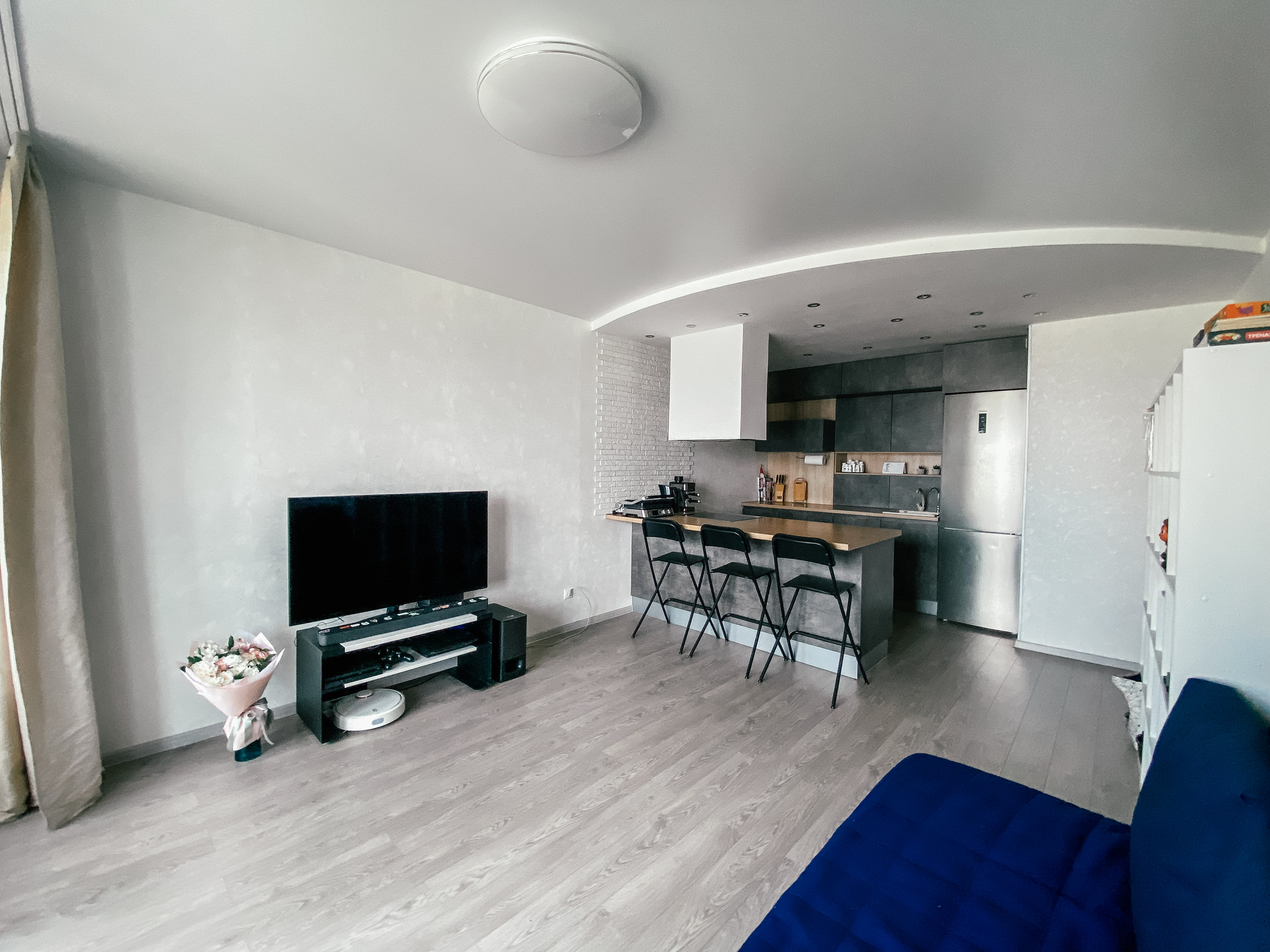 В квартире сделан качественный ремонт из дорогих материалов. На полу ламинат, коридор керамогранит. Потолки натяжные с гипсокартоновой конструкцией в зоне кухни. Санузлы полностью в кафеле. Оставим новым хозяевам - кухню со встроенной техникой + холодильник, а также стиральную машину, все остальное по договоренности.
