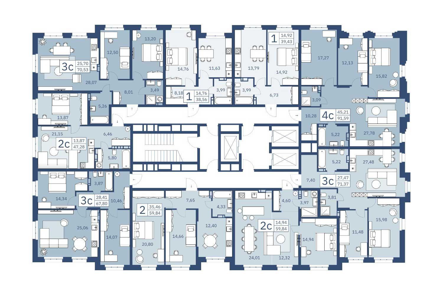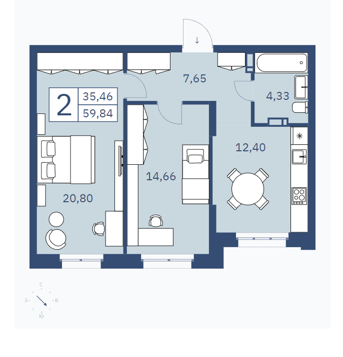 Общая площадь 59.84 м2
