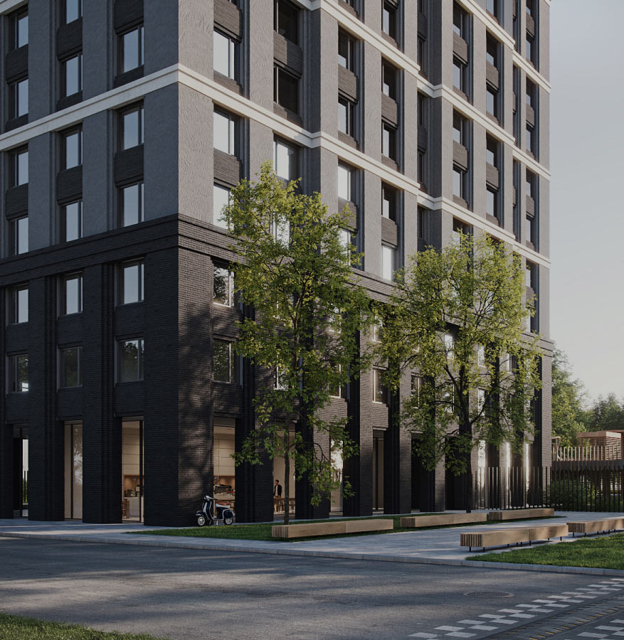 Защищённость — один из главных приоритетов проекта ZOE. Территория жилого дома находится за огражденным периметром, а благоустроенный двор поднят на высоту второго этажа.