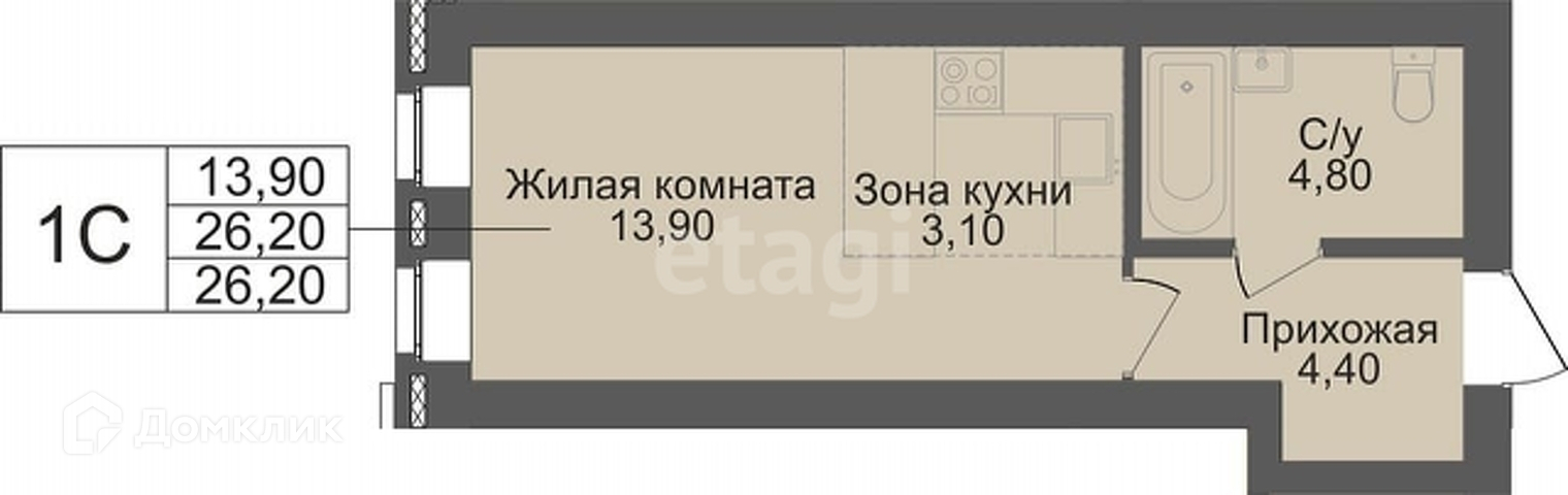 Общая площадь 26.2 м2