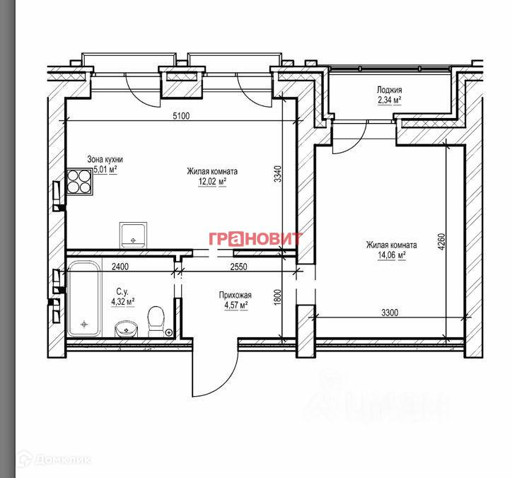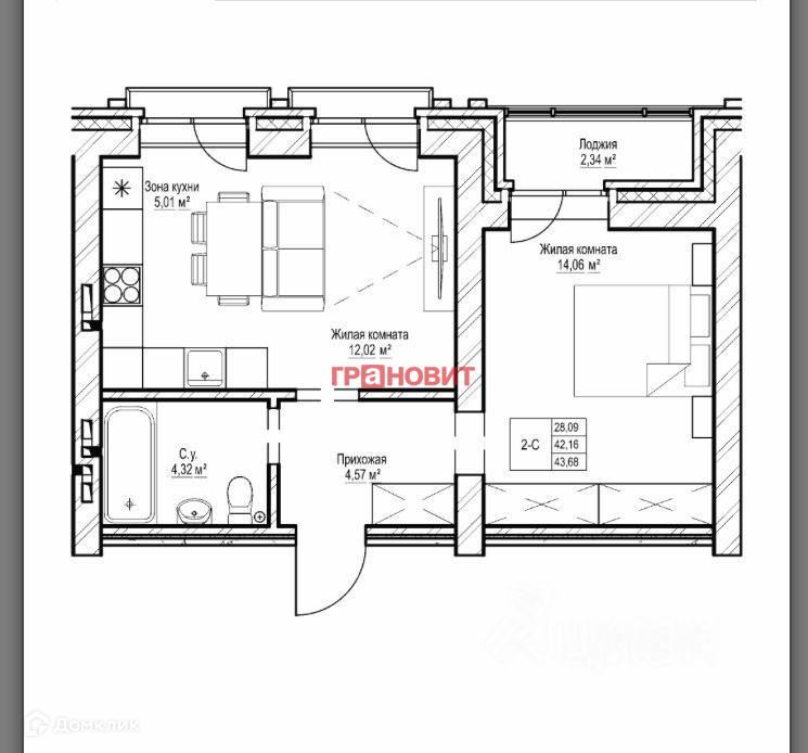 Общая площадь 43 м2