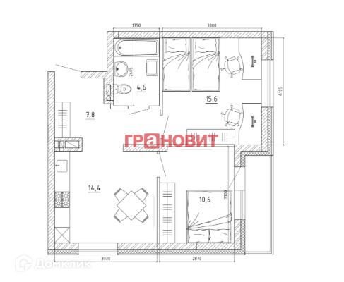 Общая площадь 54.1 м2