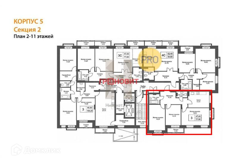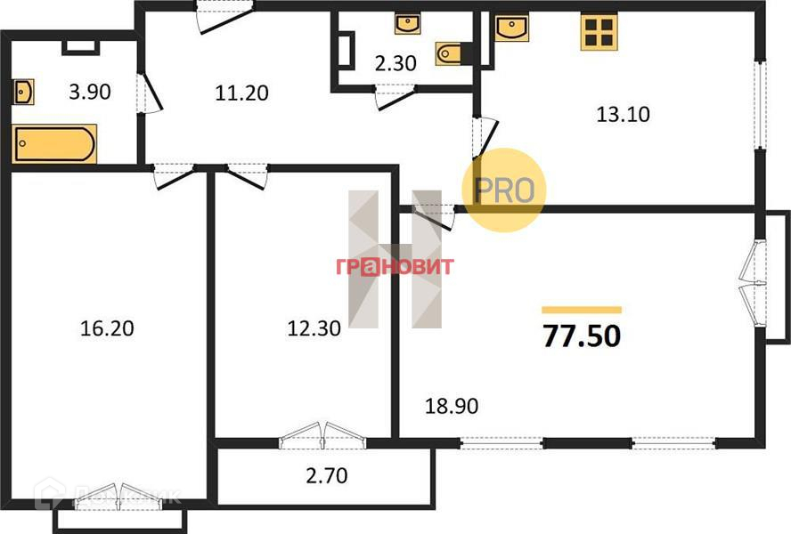 Общая площадь 77.5 м2