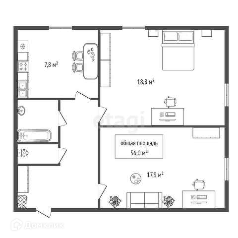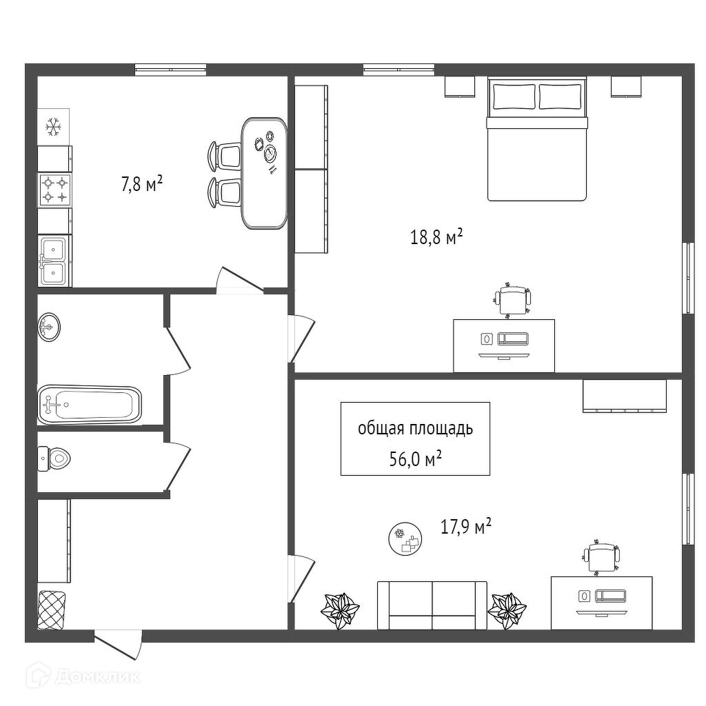 Общая площадь 56 м2