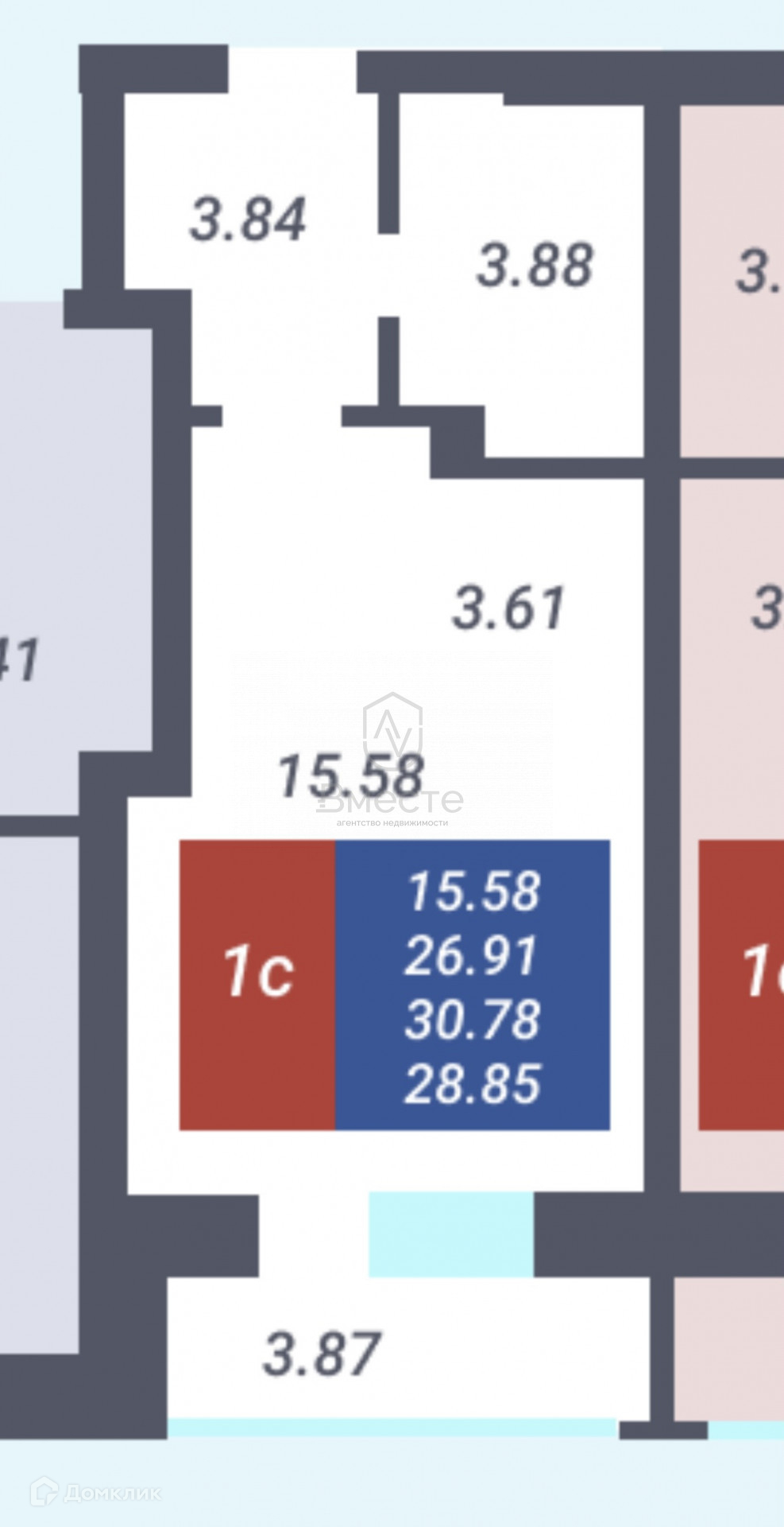 Общая площадь 27 м2