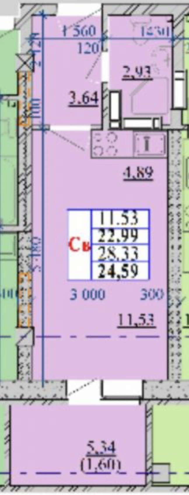 Общая площадь 24.6 м2