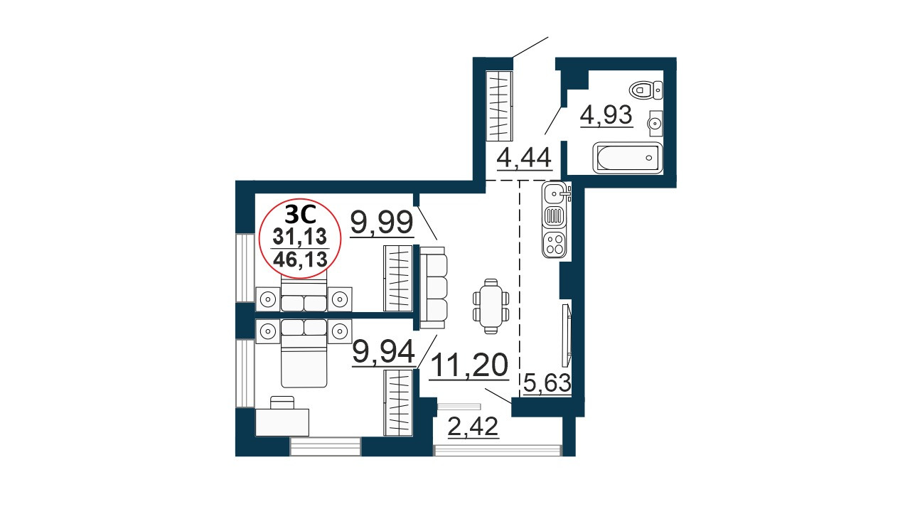 Жилая площадь 31 м2