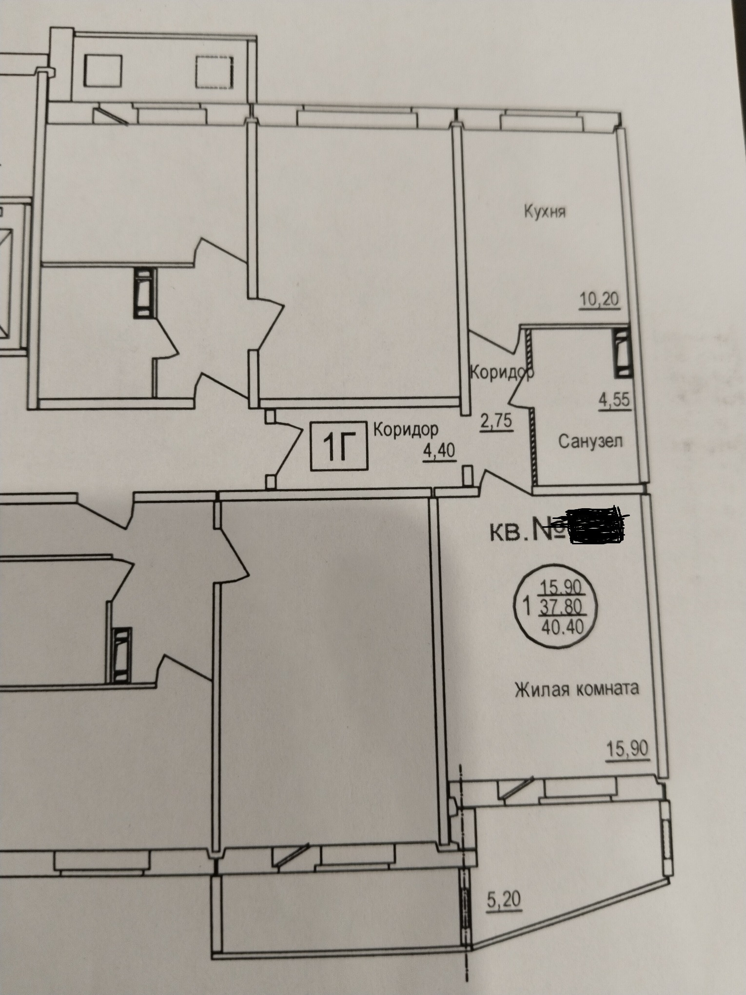 Общая площадь 38 м2