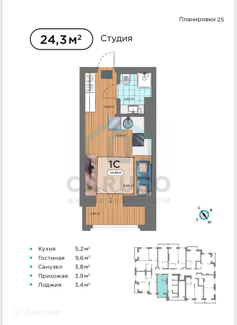 Квартира студия, 25.82 м2, этаж 2 / 25, на продажу в Новосибирске, улица Кирова, 274