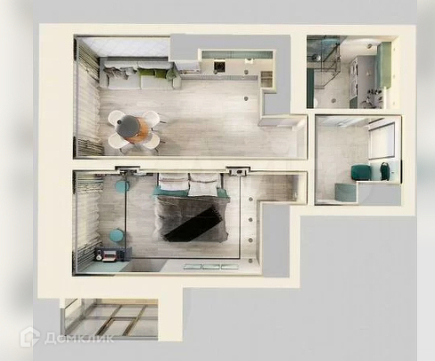 Удобная планировка : квадратный коридор , совмещённый санузел , большая кухня - гостиная 18 кв.