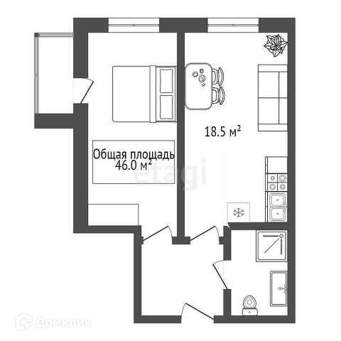 Общая площадь 46 м2