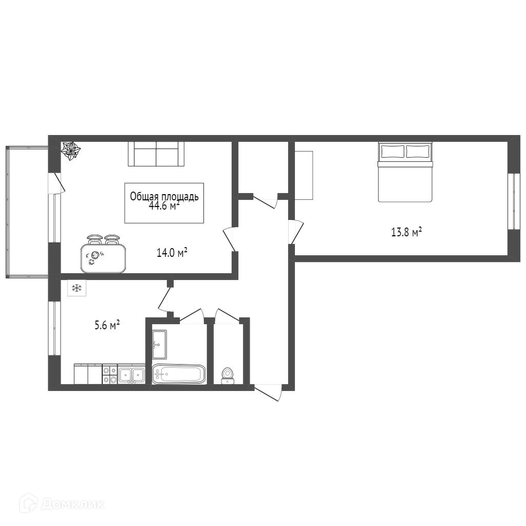 Общая площадь 44.6 м2