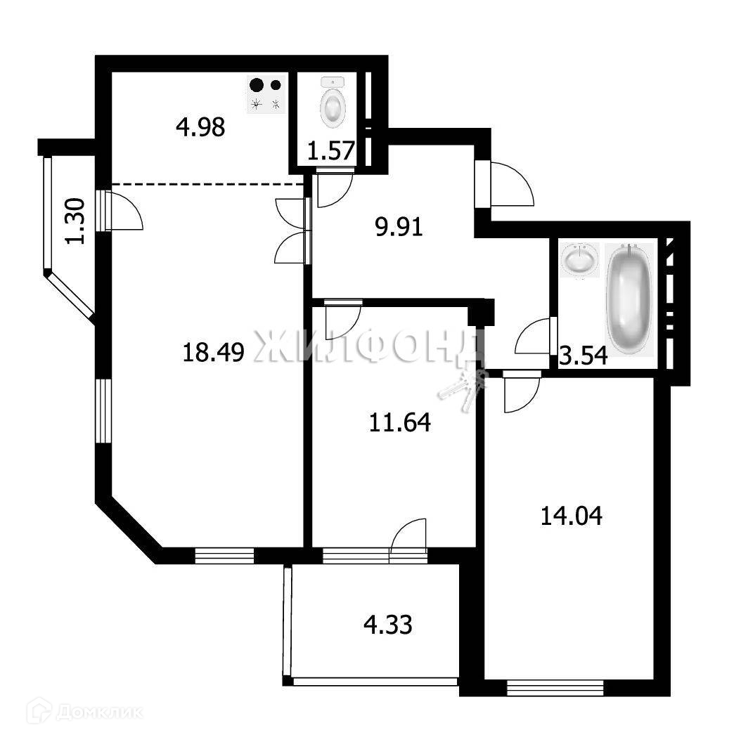 3-комнатная квартира, 64.2 м2, этаж 9 / 19, на продажу в Новосибирске, Плановая улица, 52