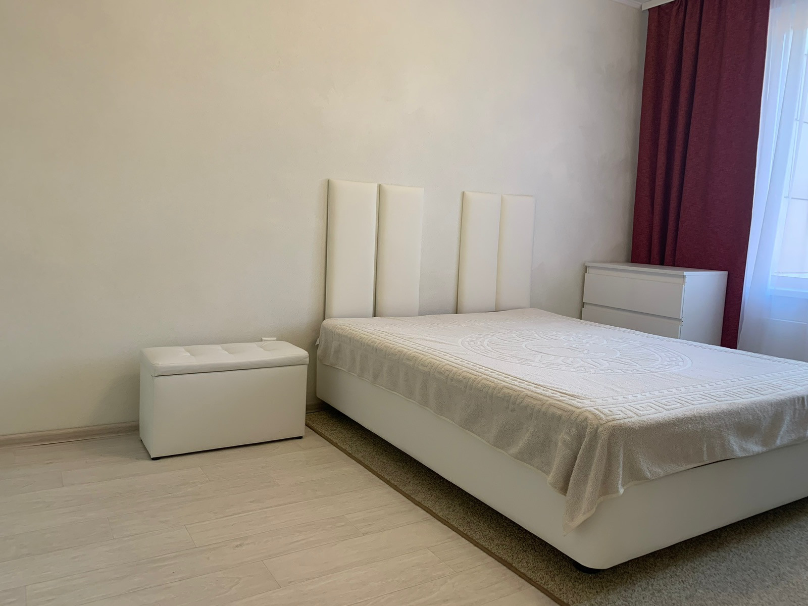 Спальня площадью 18,8 м с большим встроенным шкафом.