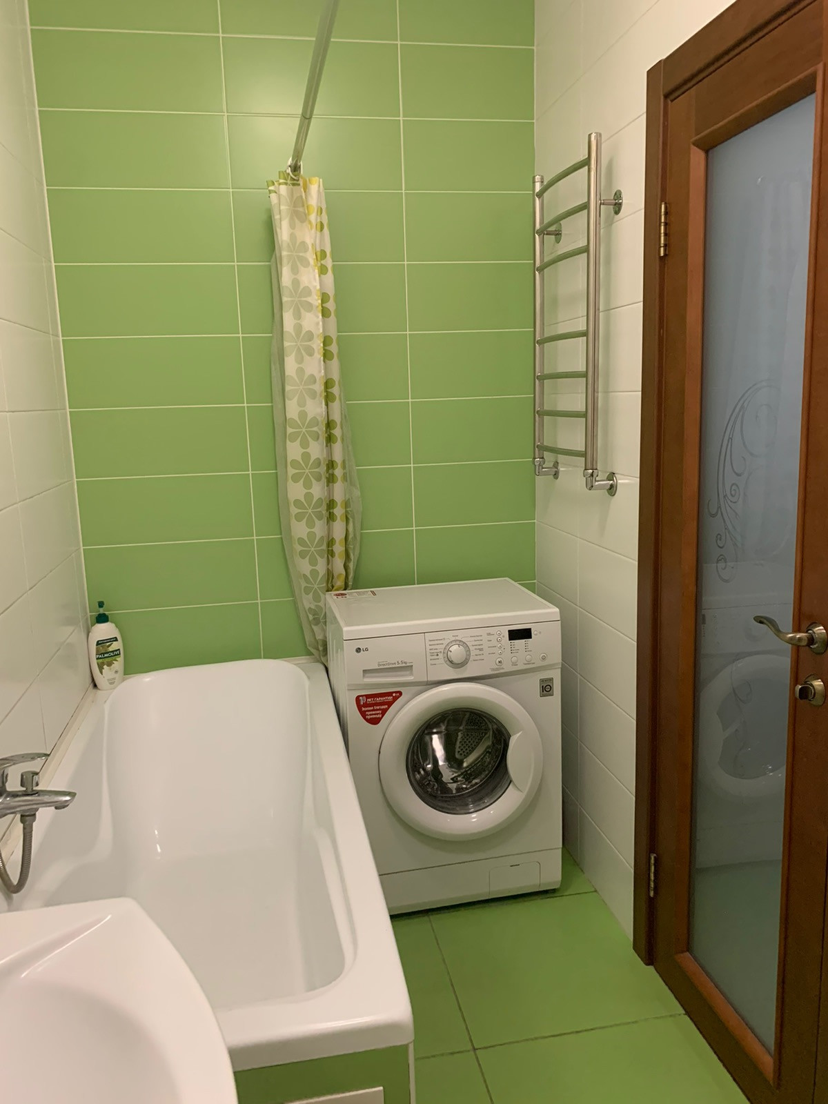 В санузле инсталляция, сантехнический душ со смесителем, ванна и раковина, а также есть водонагреватель.