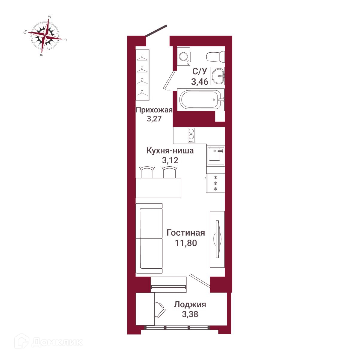 Общая площадь 25.03 м2
