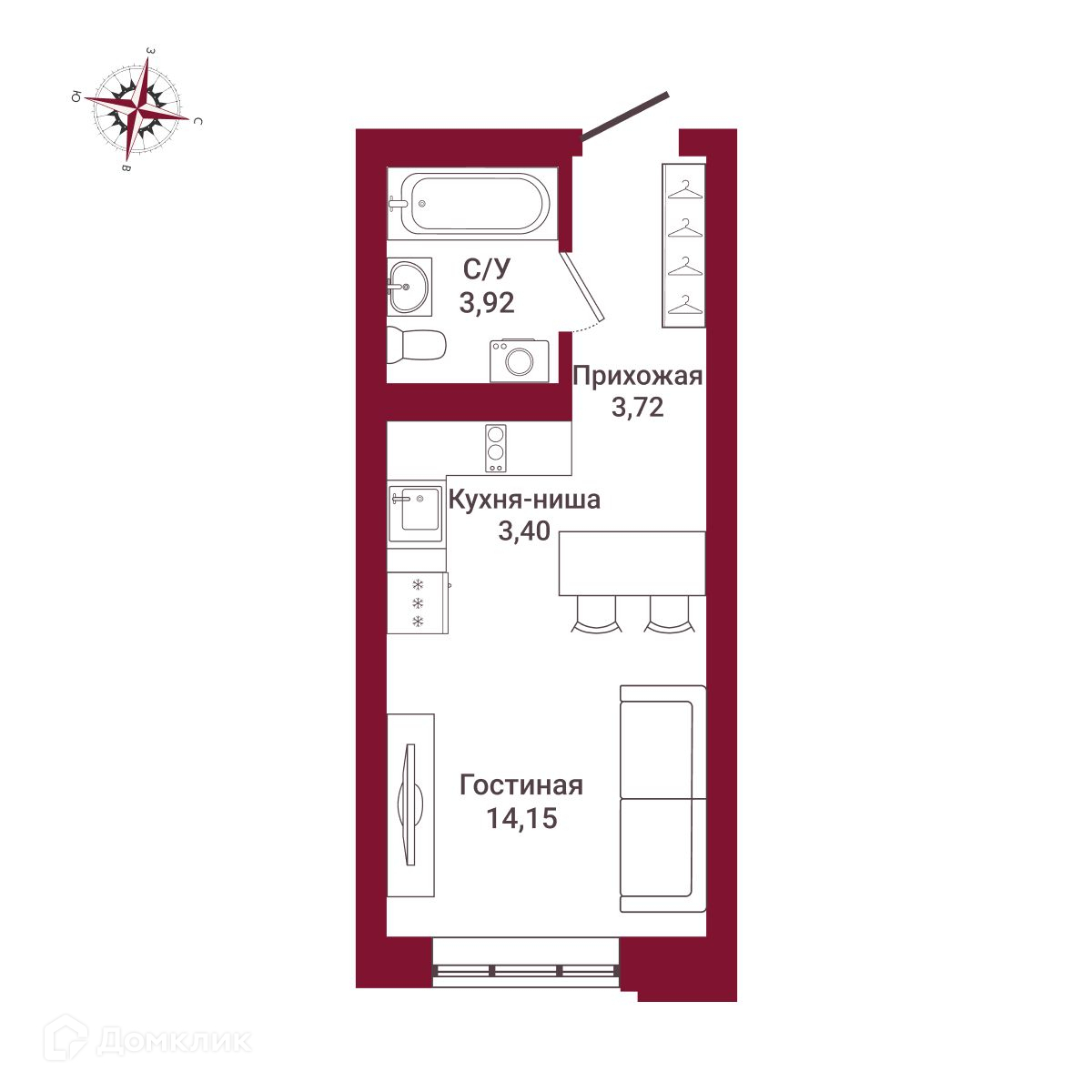 Общая площадь 25.19 м2