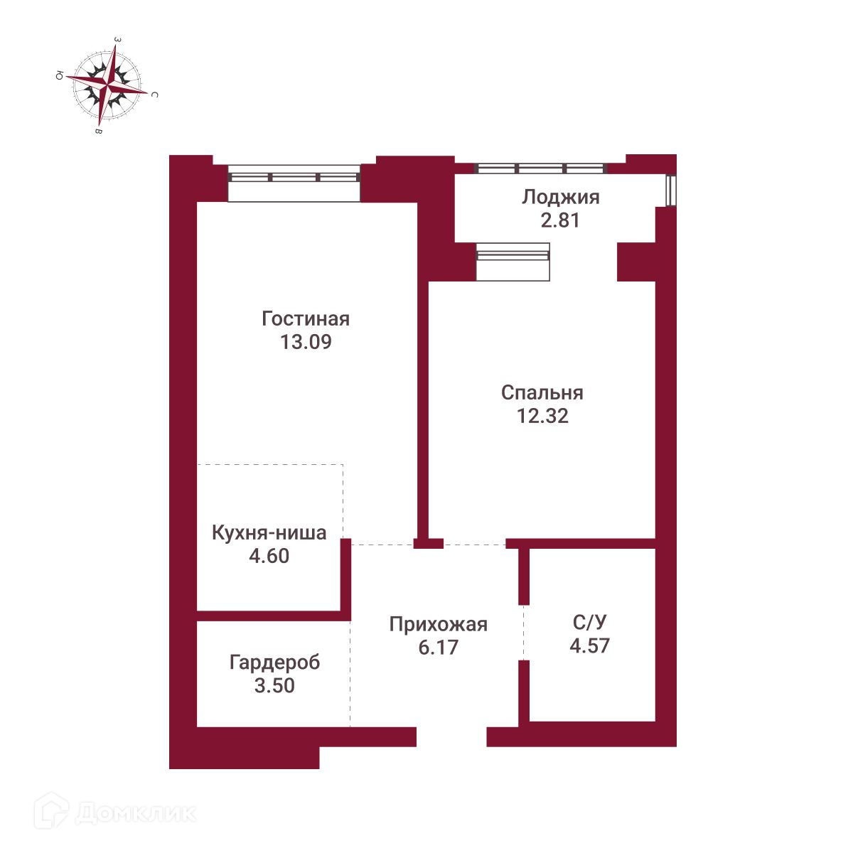 Общая площадь 47.06 м2