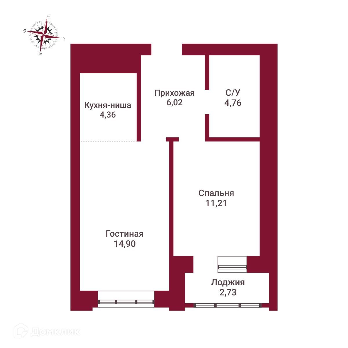 Общая площадь 43.98 м2