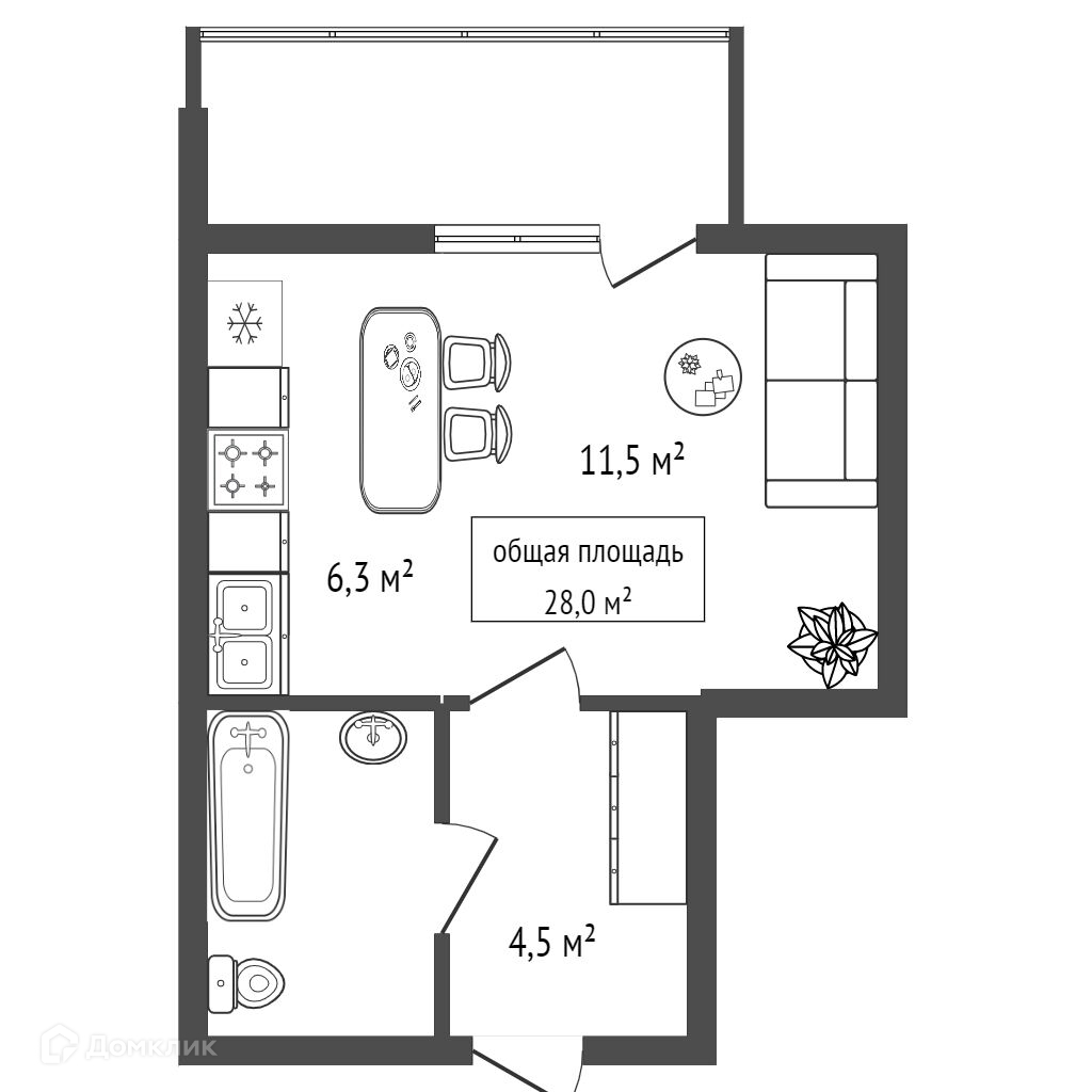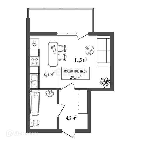 Общая площадь 28 м2
