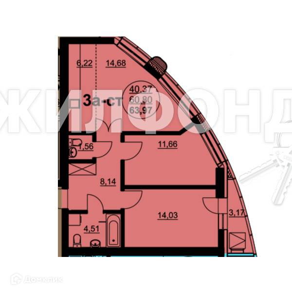 Общая площадь 64 м2