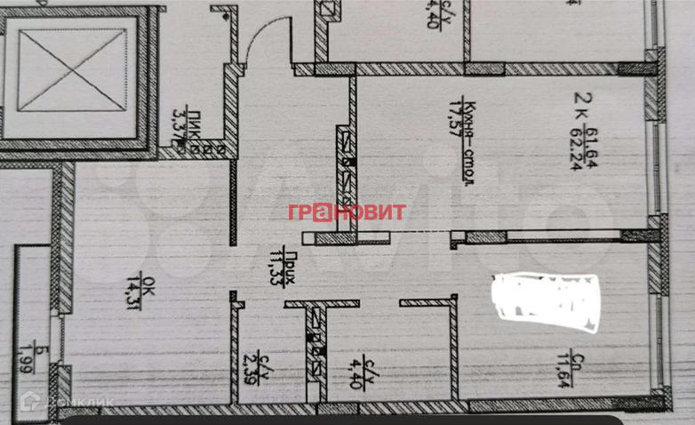 2-комнатная квартира, 61 м2, этаж 3 / 9, на продажу в Новосибирске