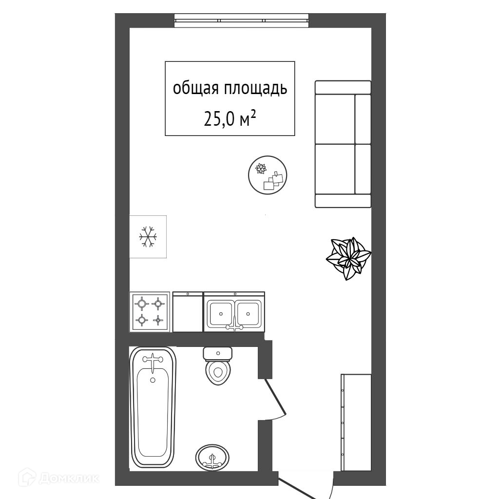 Общая площадь 25 м2