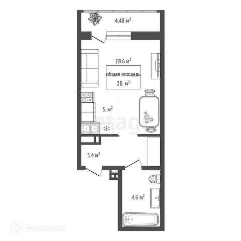 Общая площадь 28 м2
