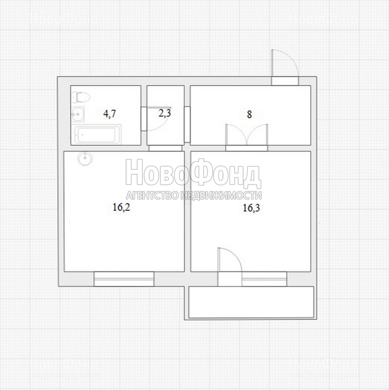 Общая площадь 47.5 м2